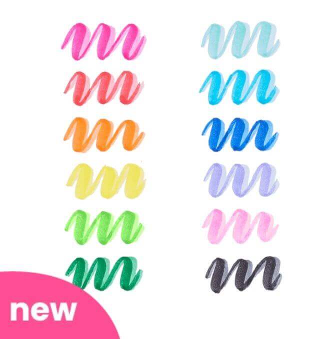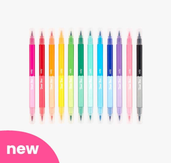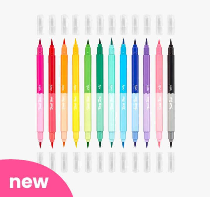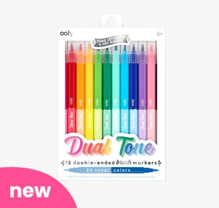 This set of 12 brush markers gives you double the color options. One end of the dual ended marker has a darker color-the other end a lighter complementary color. Brush markers are great for art and craft projects, creating elegant writings or colorful doodling. All 24 brush marker colors feature acid free inks.