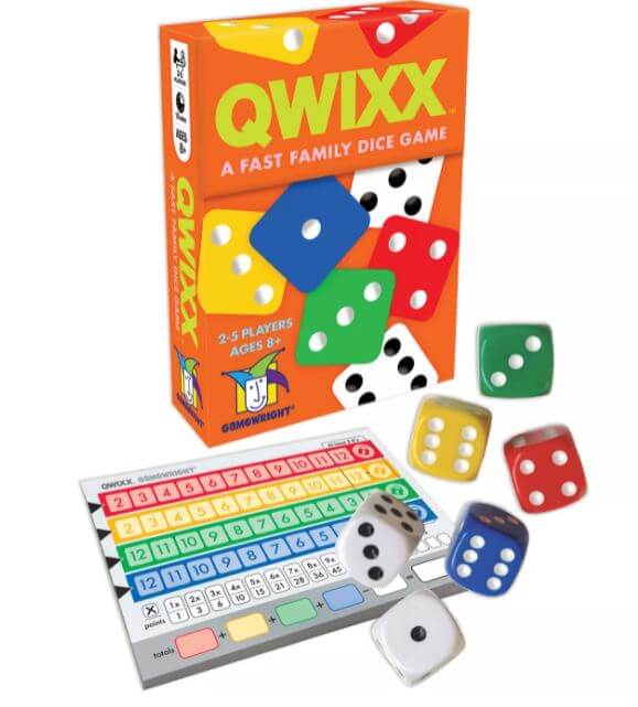 The Qwixx Dice Game from Gamewright is a fun game for some quick thinking and math. Players roll six dice of different colors, and cross numbers off from their scorecard as they try to score the highest points. The game ends when a player strikes four penalties or strikes off a second color. Engage your family and kids with this simple and clever game.