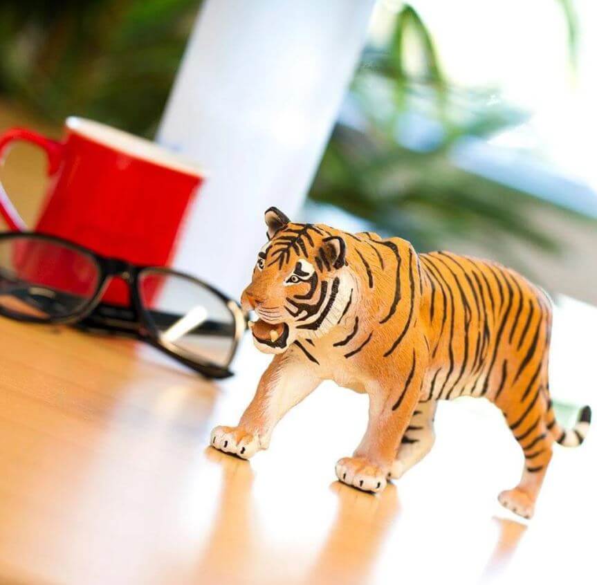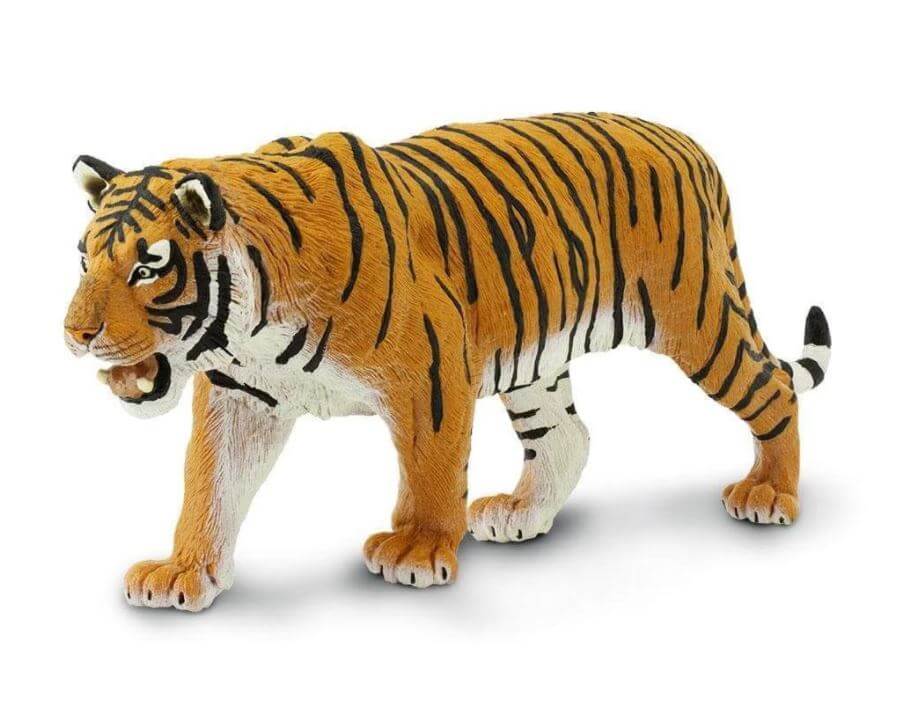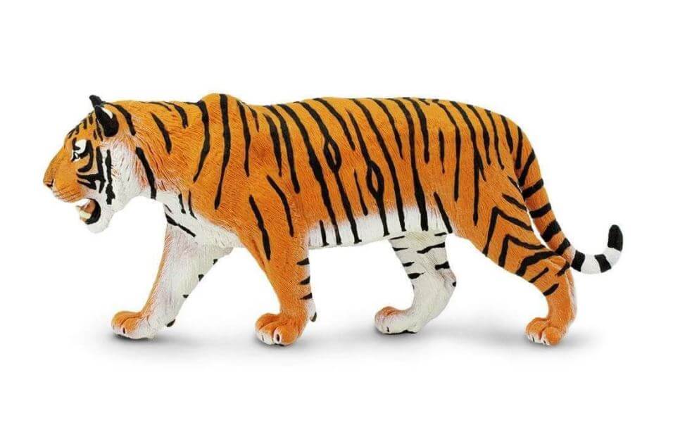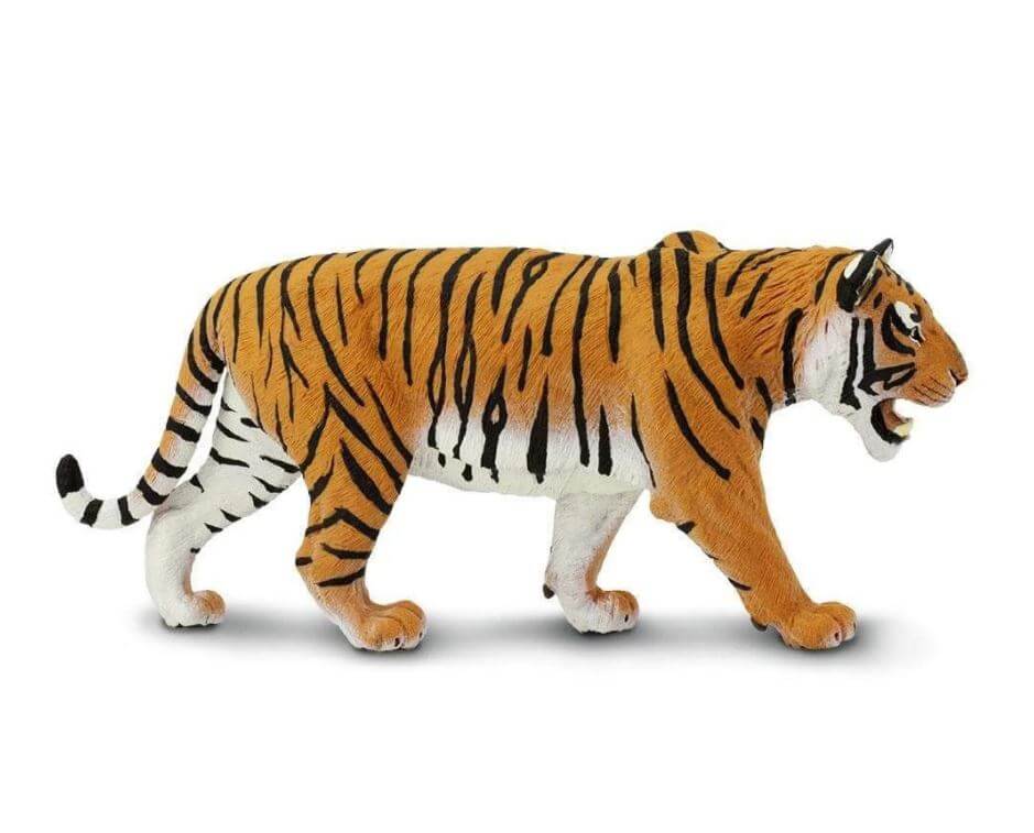- Size and Color: Measuring 10.5 inches long and 4.5 inches tall, this model is as tall as a soda can and just an inch and a half shorter than a ruler. Siberian tigers have light reddish-orange coats with contrasting narrow black stripes.